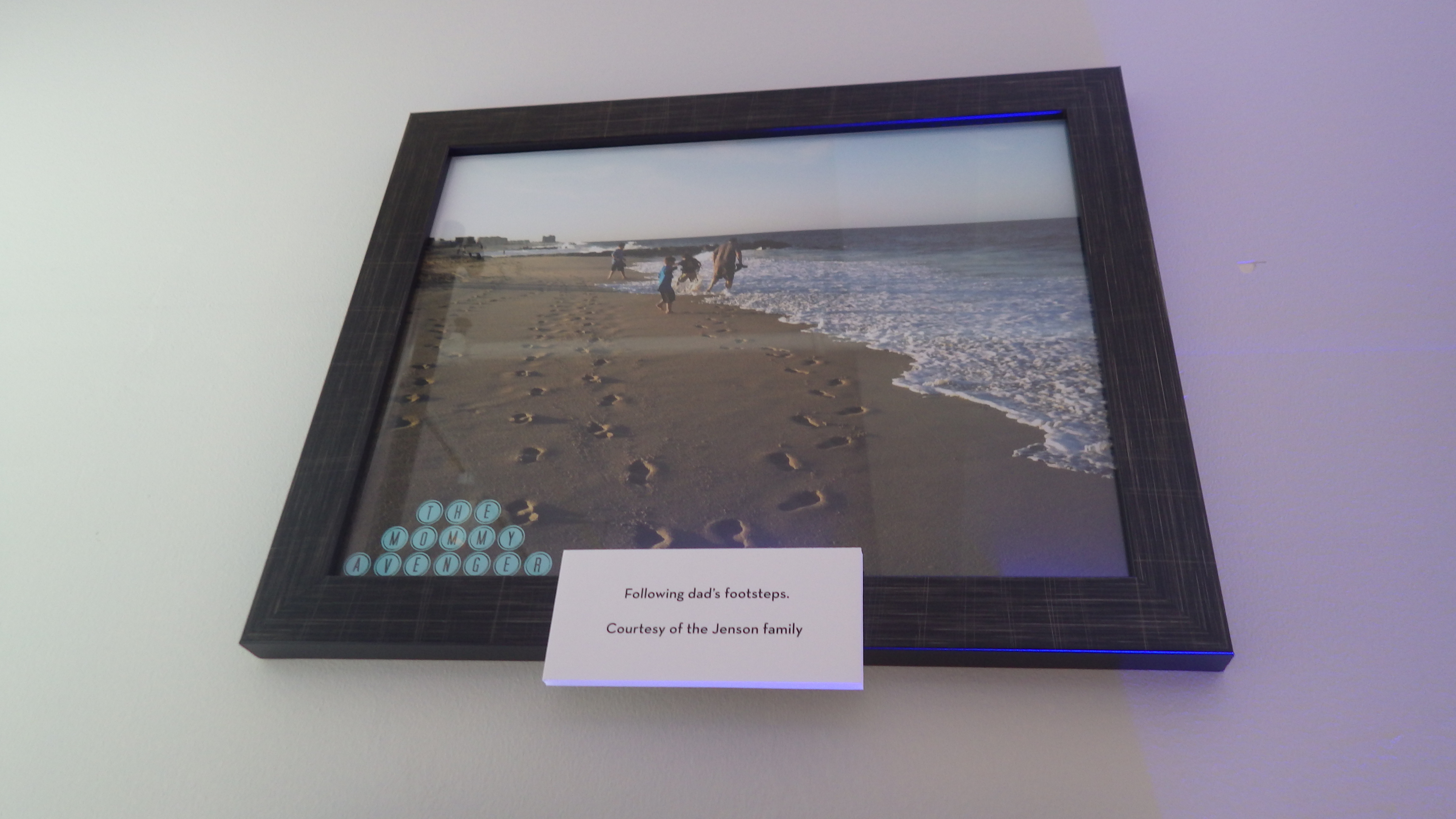 Throughout the gallery, we were able to see family pictures of Eli and his dad, Archie, as well as special moments with his own little girls. We also got to see special moments caught on film of an assortment of other dads. As we know, it’s those special little moments that put smiles on our faces and bring the best memories. We really enjoyed seeing so many happy memories and families through photographs. I was honored to have my own photograph of my husband and boys walking in the sand on display.