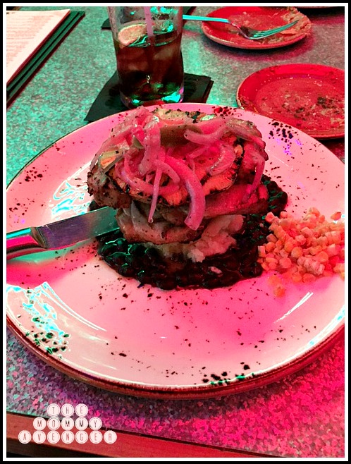 Our server highly recommended the Pork Roast Loin for my husband. This dish consists of a slow roasted pork loin in cilantro mojo. It is served with boniato mash (which is like a white sweet potato), black beans, and roasted pineapple. He was thrilled with her recommendation, as it was absolutely divine.