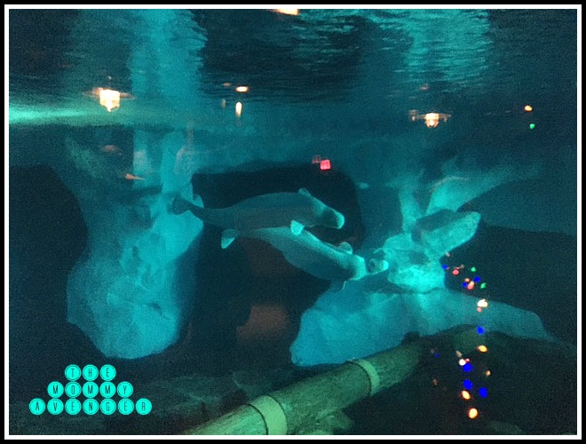 Shopping, dining, and more special shows, including a Sesame Street show for younger audiences could be found throughout the park. There was so much to do! We ventured over to the Polar Express Experience, a 4D ride which was so much fun! Upon our exit of the ride, we were led through a hallway that pumped the delicious aroma of hot chocolate all around us. We found our way to the Beluga whales and walls of snow that showcased a beautiful Christmas tree and Santa with his sleigh. Our children were able to visit Santa after riding the Polar Express, which was definitely a highlight of the night.