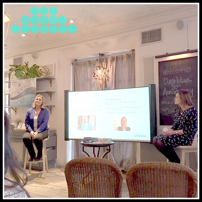 We were able to listen to Dr. Donnica Moore and Dr. Fiona Clancy discuss the evolution of fertility and the idea behind current Clearblue products. They were a pleasure to listen to and converse with, a wealth of information, whether you were trying to conceive or not. Did you know how pregnancies were determined in the 1920s and 1930s? There were no home pregnancy tests, but mice, rabbits, and frogs would be injected with a woman’s urine to detect hCG activity. Results could be received 100 hours later! Today’s woman would have a fit if she had to wait that long for results! Clearblue knows that and they have developed the Advanced Digital Pregnancy Test. Not only will it tell you if you are pregnant, it can also tell you about how far along you are based on your last ovulation. That is incredible to see the progress made in less than a century!