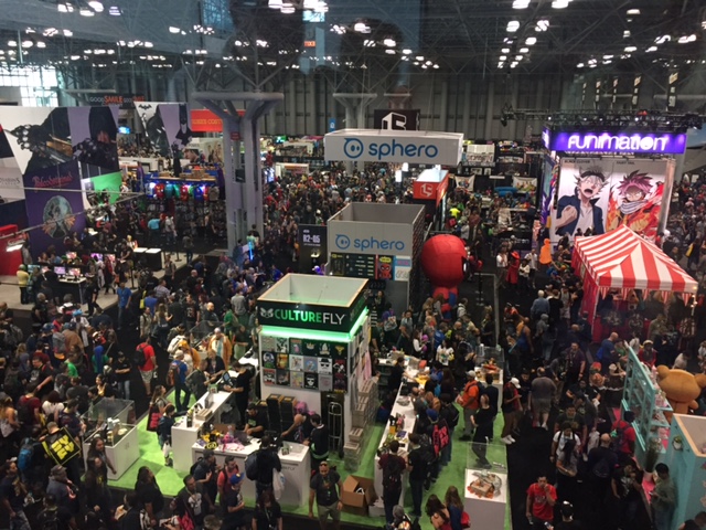 Yesterday, I had the chance to visit Comic Con in New York City on the first day of the convention. I was invited* to come and check out the pop culture phenomenon and I was thrilled to have the chance to do so! Once I arrived in New York, I knew I was in for quite the spectacular day. Speckled throughout New York City streets were people dressed as favorite characters from comics, movies, and TV shows. There is nothing quite like walking down the street to look up and see The Joker walking in front of you or seeing every character from Adventure Time walking hand in hand. Everywhere you looked, you could see a trail flocking to the mecca that is known as Comic Con.