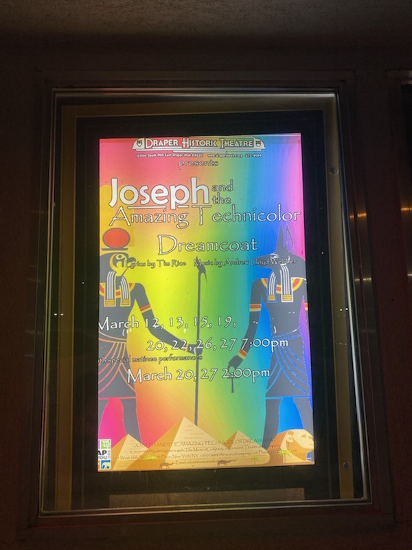 It is always a wonderful time watching the world of Joseph and the Amazing Technicolor Dreamcoat come alive on stage and the cast and crew of The Draper Historic Theatre has made it happen. From the beautiful colors, to the comedic timing, and the joyous cast it was such a fun night. We love that during this tumultuous time in the world this cast and crew were able to find a safe way to bring theatre back into our lives.