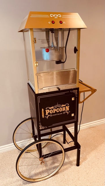Some would say they wouldn’t want to stop going to the movie theater for the popcorn alone. I know what you mean, there’s nothing quite like movie theater popcorn…..or is there? Yup, there is and I have the perfect, surprisingly affordable, machine that you need to get for your home theater. This Nostalgia Vintage Professional Popcorn and Concession Cart is the greatest home appliance EVER! Purely aesthetically, this machine is so cool looking. Do you notice it even matches my home theater sign? The gold and black smoothly fit into existing decor and doesn’t take up a ton of space. It can be ready to go whenever you are to make the most incredible buttery popcorn, hot and fresh for sitting down for a family movie. But, I’ll be honest, we get a lot more use out of it than even just a weekly movie night. When friends come over, basketball games are on, it really doesn’t matter what the occasion, because it’s always great to have an excuse to make a quick batch. You can make it with kernels and popcorn oil or buy prepacked kits, which I have found makes the perfect amount with amazing flavor in no time. This machine takes any hard work out of making movie quality popcorn and what’s especially great about it is that clean up is very simple. Any components that need to be washed detach and can be put back very easily. That’s a huge plus for me!