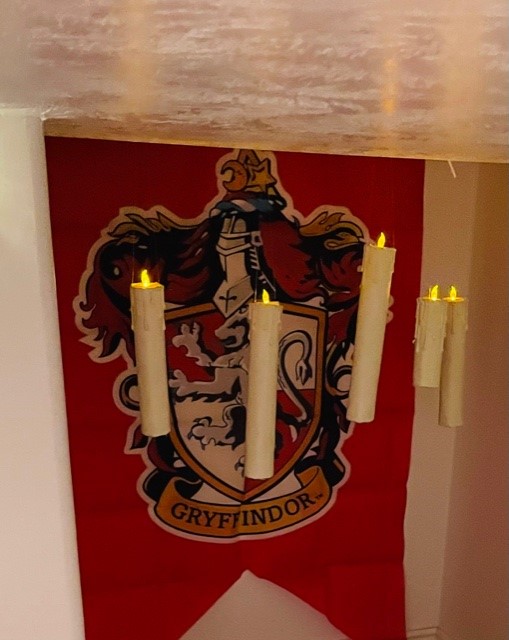 Near the play kitchen, we found the perfect addition for our space. Floating candles! How cool to have a set or two of your very own floating candles in a Harry Potter themed playroom, right? Etsy shop AtticAngelCreations is where you can pick up your very own. These candles are so great! Invisible fishing line can keep them hanging above their heads and add to the magical allure of eating food at Hogwarts. These candles are durable and safe for use around little ones, as they are flameless. The kids love them!