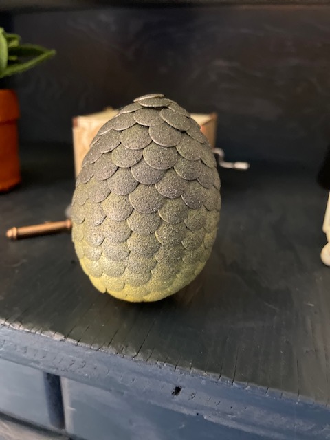 Mystical things and creatures are always found in this world, so it seemed only natural to have a dragon’s egg on the shelf, too. I love this special yellow ombre dragon egg that sits perfectly on the little cupboard shelf from Etsy shop Hope and Grace Pens. This shop has way more than just dragon eggs, so be sure to look through their listings, but these are the perfect size for my play space. Harry Potter fanatics of all ages will love the different exotic eggs available here.
