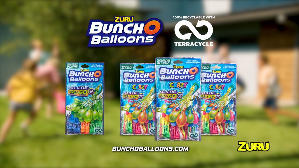 Mowbray continued, “We were able to improve both the manufacturing process and materials used – today we source and upcycle 100% certified and traceable used plastics that are found in landfills and polluting our oceans, and ZURU consumers in the United States, Canada, United Kingdom, Australia and New Zealand can recycle at no cost to them by sending their used Bunch O Balloons parts, balloon pieces and foil bag packaging to renowned recycling company TerraCycle.”