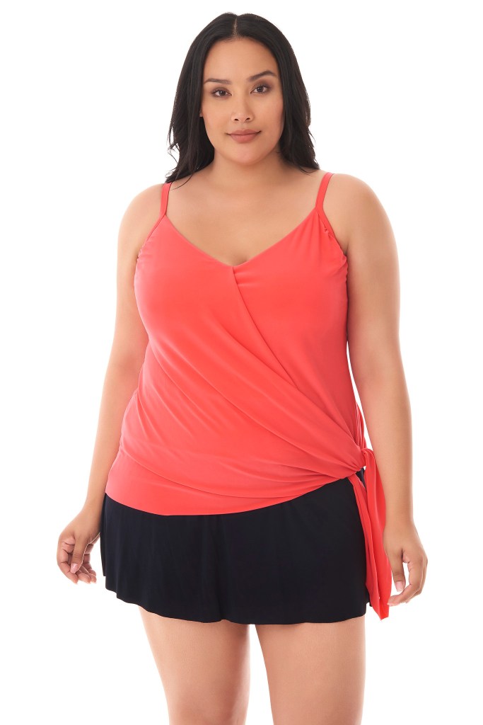 I also love this swimsuit from MagicSuit. Their suits are meant to help you look sleeker and slimmer, which is a huge selling point because it works! This particular suit can be assembled by picking separate pieces from the brand. I love the bright colors of the solid Alex tankini top paired with a black tennis skirt. It’s stylish, versatile, and gives me the extra coverage I want, while designed to hide the hips and distract the eyes from the thighs. I’ll happily take that!