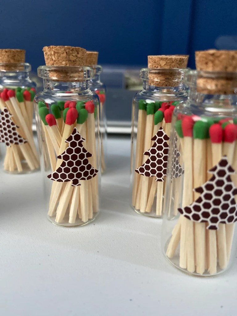 To accompany those adorable candles, why not pair them with these festive Christmas red and green matchsticks from Etsy shop SkylarVaile? I love the cute glass vials filled with colorful matches with a Christmas tree striker on the outside and topped with a cork. Such a great gift idea!