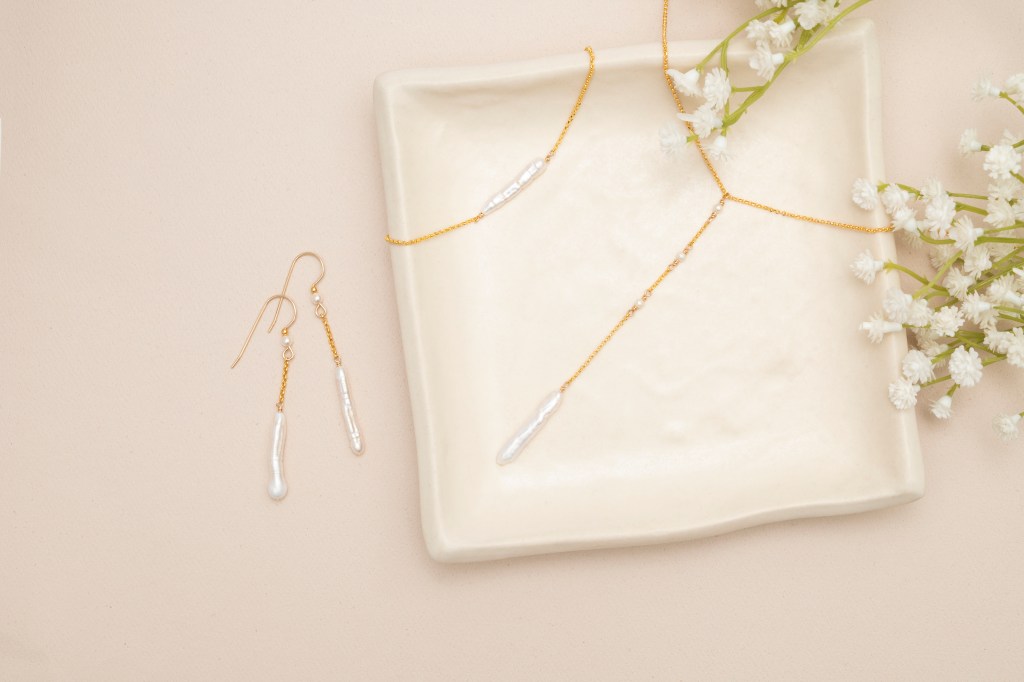 The Livia Pearl Drop Necklace is so unique, it is sure to be a topic of discussion whenever you where it. These free-form pearls are really gorgeous and look beautiful on this gold adjustable necklace. It is a great layering piece, as well.