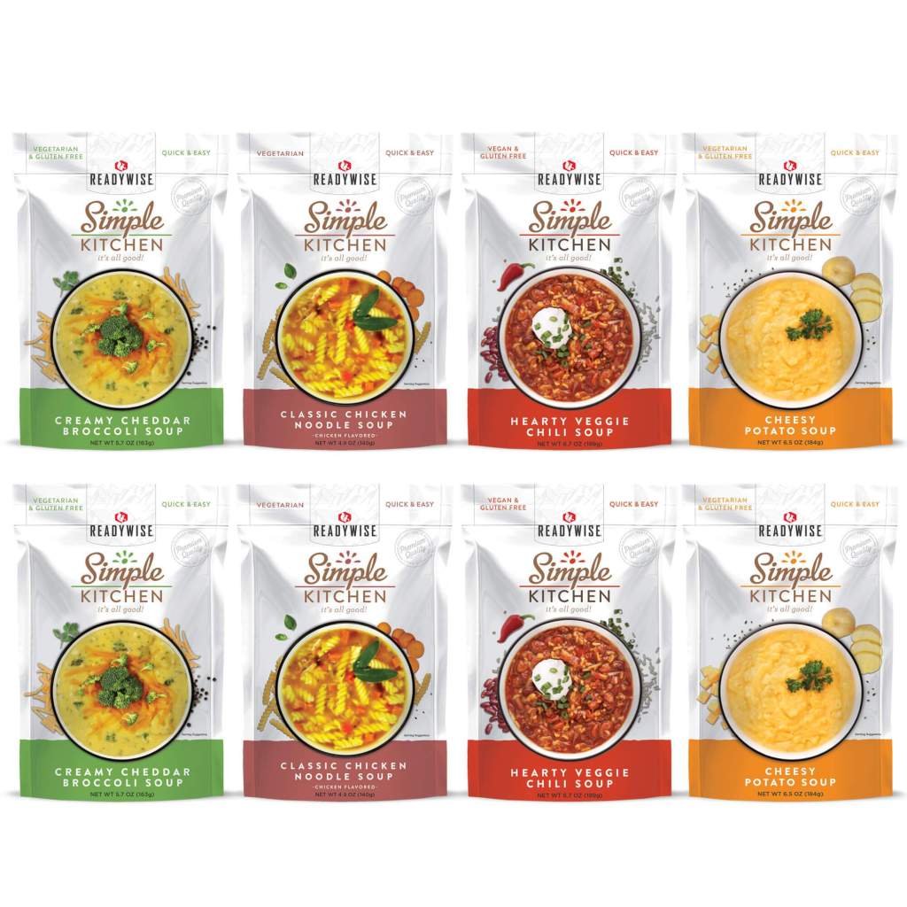 Where do you start? It depends on what you are able to do. You can start small and select items that you can use every day. For adding to your pantry, I like the Simple Kitchen Soup Variety Pack. These soups are really delicious and will last for up to 3 years. They are perfect for everyday food rotation and include great flavors like Classic Chicken Noodle Soup, Creamy Cheddar Broccoli Soup, Hearty Veggie Chili Soup, and Cheesy Potato Soup. You can rest assured you could make these for dinner one night after work or store it for your just-in-case scenarios, knowing that it has an extended shelf-life.