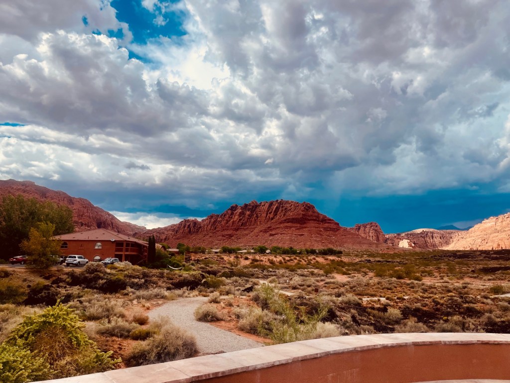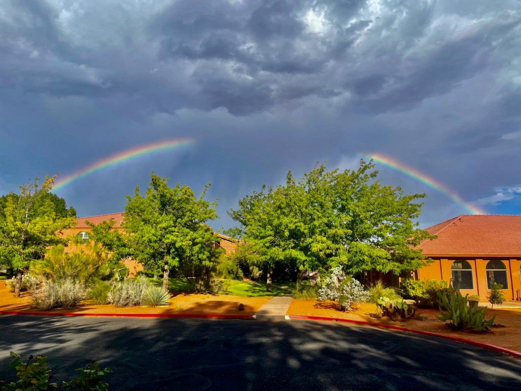 Throughout the day, you could choose from a wide variety of fitness classes and other activities to keep you entertained, moving and fully enjoying your stay. In addition, you could schedule excursions to visit popular destinations in Zion National Park, like the Narrows and Angel’s Landing, visit Kanarra Falls, go rock climbing, kayaking, among others. I realized as we were onsite that most vacations I take are typically to a city–one where you barely stay in your hotel because you are off being a tourist. I do love those type of vacations. But, there is really something to be said about taking a weekend and filling it with fitness and wellness. A time to reflect, enjoy the outdoors, breathe deeply, eat delicious, healthy meals, and move your body. It felt fantastic! While cell coverage and wi-fi were readily available at the resort, I found that I didn’t want to look at my phone or attend to emails. I wanted to be in the moment, enjoying quality time, truly living life. It was wonderful to disconnect and feel peaceful. I’m not sure how, but every day during our stay, storm clouds would appear. While we only got a trickle of raindrops, the sky would change colors, illuminating or accentuating the rocky formations all around us. Each day, we were treated to a full rainbow in the sky, almost as if it they had been hand painted just for us. The beauty to be seen here was unmatched.