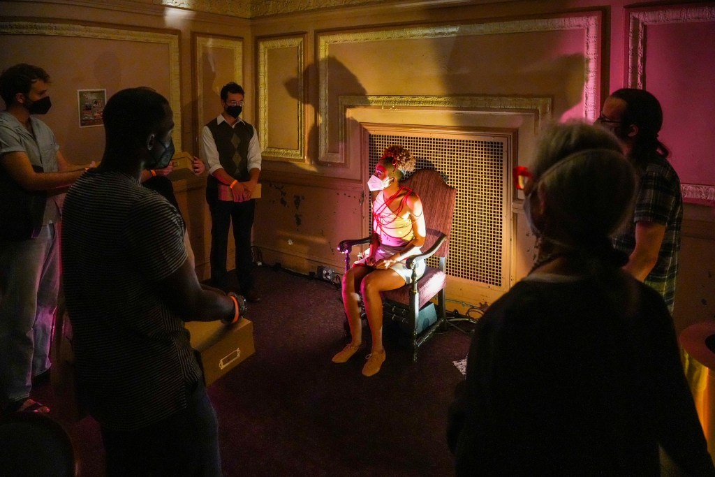 When we arrived, we had to determine if we wanted to take stairs and verbally or physically interact with the performers for the first half of the presentation. We went for the whole experience.