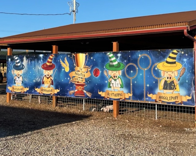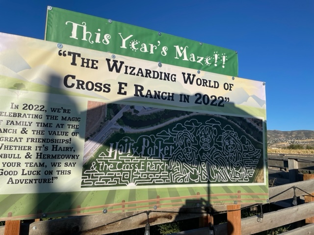 The older ones opted to go brave the mega corn maze. Three different mazes at varying levels of difficulty are available to choose from–do one or do all. This year’s theme was “The Wizarding World of Cross E Ranch in 2022”. We chose the hardest maze and, wow, it was pretty challenging! We had a set of clues to look for checkpoints and some well placed wizarding world items. There are over 3 miles of trails within the corn maze and it’s easy to get turned around, but very fun to explore. We may or may not have figured out how to get all the way through, but I’ll never tell.