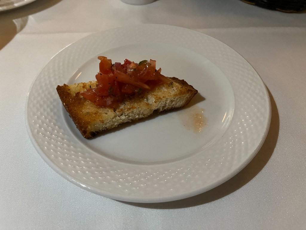 We were immediately seated and served a perfectly-toasted Bruschetta with a sweet pickle topping. The chef managed to subdue the sharpness of the vinegar without diminishing the flavor.