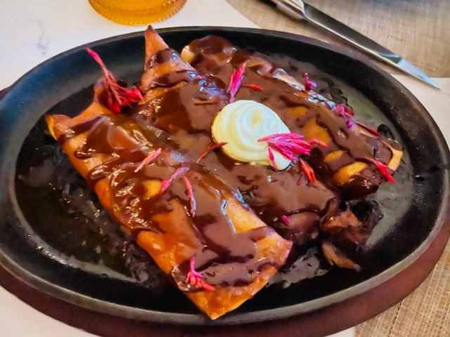 Looking at the menu, there were many options we could choose from. I don’t drink alcohol, so I opted for a refreshing Casa Horchata served in a terracotta pot that was so good. For those wishing for non-alcoholic options, there are plenty available. For those that wish to drink, there is an extensive menu of cocktails, impressive margaritas, beer and wine to select. The presentation on every drink I saw was quite impressive.