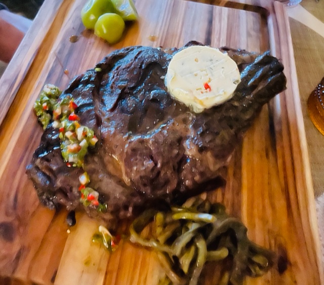 A surprising addition to the menu were the assortment of fine steaks. Filet, ribeye, Wagyu, Tomahawk, and lamb were all tempting options. We chose the 45 Day Dry Aged 20oz Bone In Ribeye to share. It arrived tender and flavorful, cooked to perfection. While not a typical option in Mexican-inspired cuisine, this was not your typical establishment, so it worked for sure.