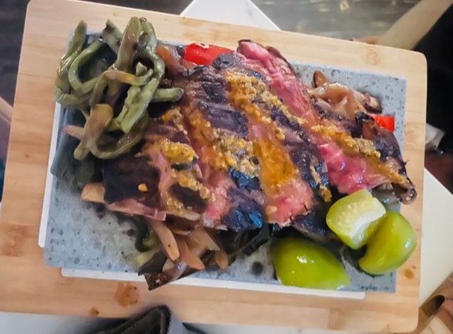 The steak A La Roca was the next to be sampled. This is their take on fajitas served over a hot lava stone. Very cool presentation and very yummy served with roasted onions, poblanos, salsa fresca, cashew salsa and house made tortillas. So, so good!
