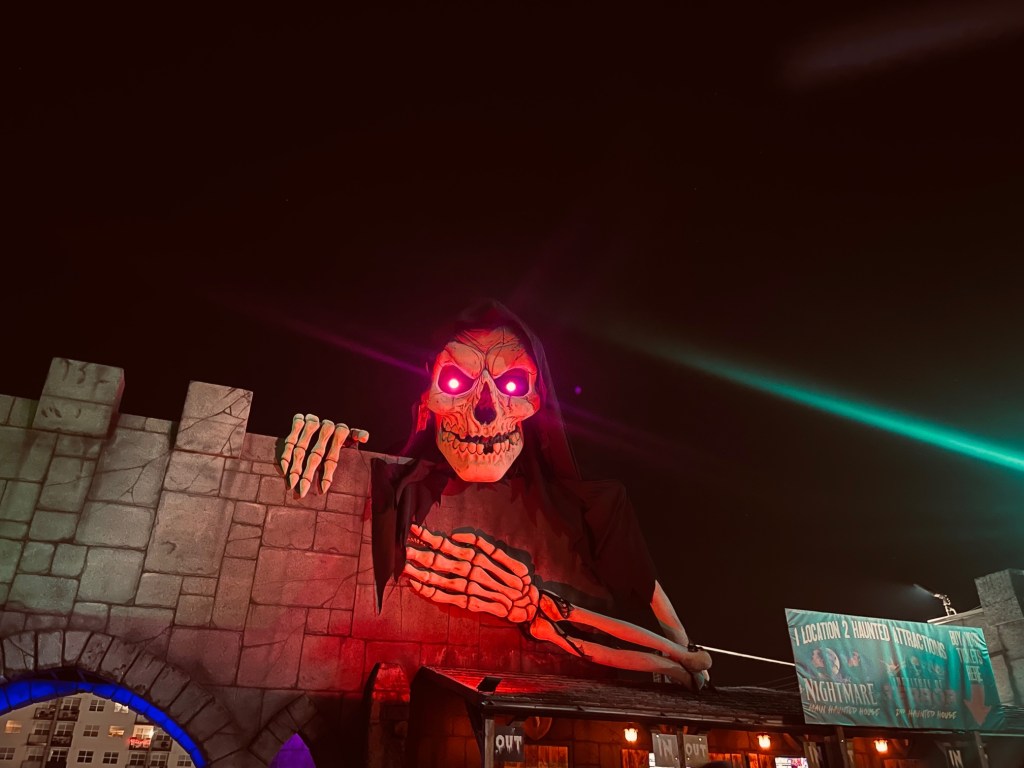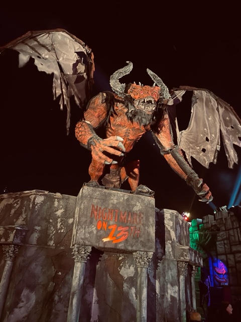 The dark sky the perfect backdrop for a complex of eerie structures lit by purple, green and red lights. It was the perfect setting. At first glance, Nightmare on 13th is quite an imposing structure.
