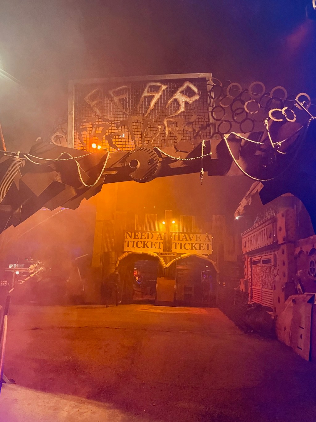 I love haunted houses all around, but to me, the best ones always have an added thrilling level to them. At Fear Factory, it is known as the Touch of Fear. This is the option to wear a glow necklace that indicate to the inhabitants of the haunted buildings that you are willing to be touched. This always elevates the experience for me and I highly recommend opting for this. If it becomes too much for you to handle, just rip the necklace off and no one will touch you again. Whenever we go with someone that hasn’t been to haunted houses, we highly encourage them to do this, too. They always protest at first, but if they wear the necklace, afterwards, they are always so glad because it enhances the experience so much.