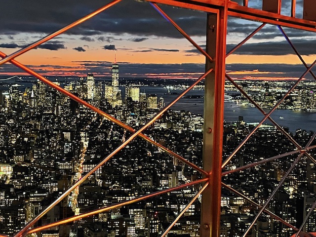 When we we ready, we went back into the building and took a special elevator to the 102nd floor observation deck. This felt like we were going to some hidden, unknown spot within the building. We were excited to see that vantage point. When the doors opened, we found ourselves in an enclosed room, not overly big, with windows overlooking it all.