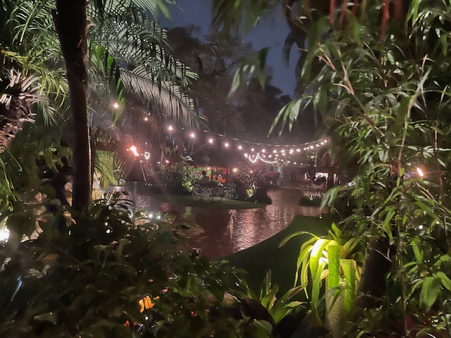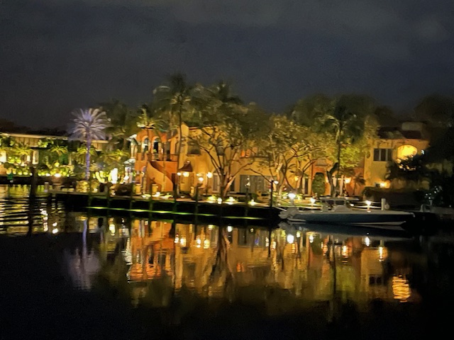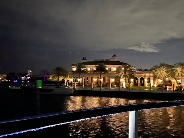 When the entertainment for the evening had finished, we worked our way back to the boat to ride the river in the opposite direction. While one might think we had seen it all on the way there, there was still much to learn and enjoy and we loved the extra time we had to enjoy the humid breeze on our skin and see the moonlit river as the lights twinkled on the water. Keeping in theme with our trip, we even saw another house where Miami Vice was filmed.