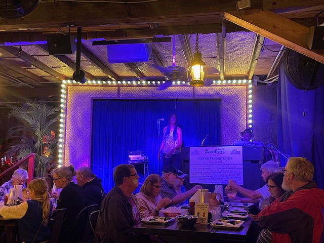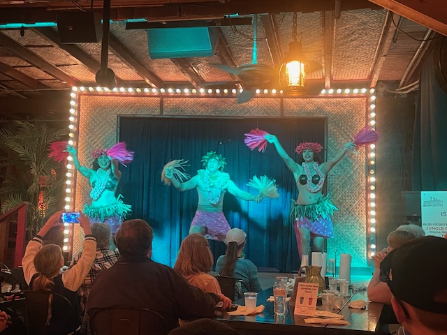 Under ordinary circumstances, after dinner and exploration of the island, entertainment would grace the outdoor stage for all to enjoy. Because the night we visited the weather was not cooperating, they seamlessly improvised and brought the entertainment under the roof where we had enjoyed dinner and the show went on, with the audience none-the-wiser that it should have gone differently.