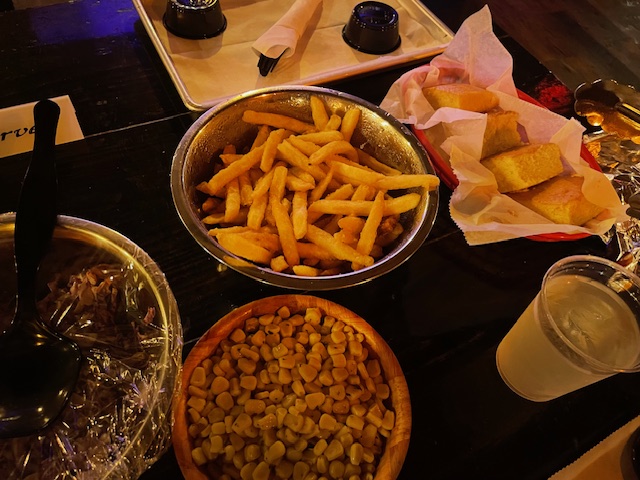 Good thing because there was so much food! We were treated to an All-You-Can-Eat BBQ, featuring baby back ribs and chicken tenders, freshly made coleslaw, corn on the cob, and cornbread, all served family-style. The food was so good! The ribs were so tender, you could eat them with a fork. For those that are vegan and vegetarian, you can select special menus when booking ahead of time. While we enjoyed our dinners, we were entertained by a singer on stage.