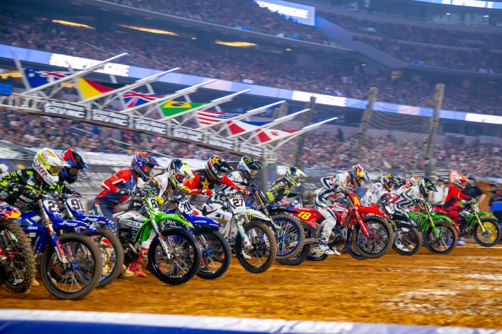 For those who have never been, Supercross is a stadium dirt bike series run on smaller tracks where every seat in the house is a good seat. 22 competitors start on the line for each race. The gate drops for everyone at once. All 22 riders barrel down to the first corner. There’s nothing quite like it.