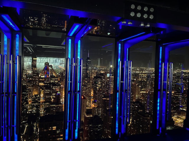 Located at the top of the iconic 875 North Michigan Avenue (formerly the John Hancock Center), Chicago 360 offers panoramic views that stretch as far as the eye can see. From the moment we stepped off the elevator, we were greeted with breathtaking vistas of twinkling city lights, the shimmering expanse of Lake Michigan, and even the distant glow of neighboring states on the horizon. Seeing Chicago illuminated at night truly captures the essence and vibrancy of the city.