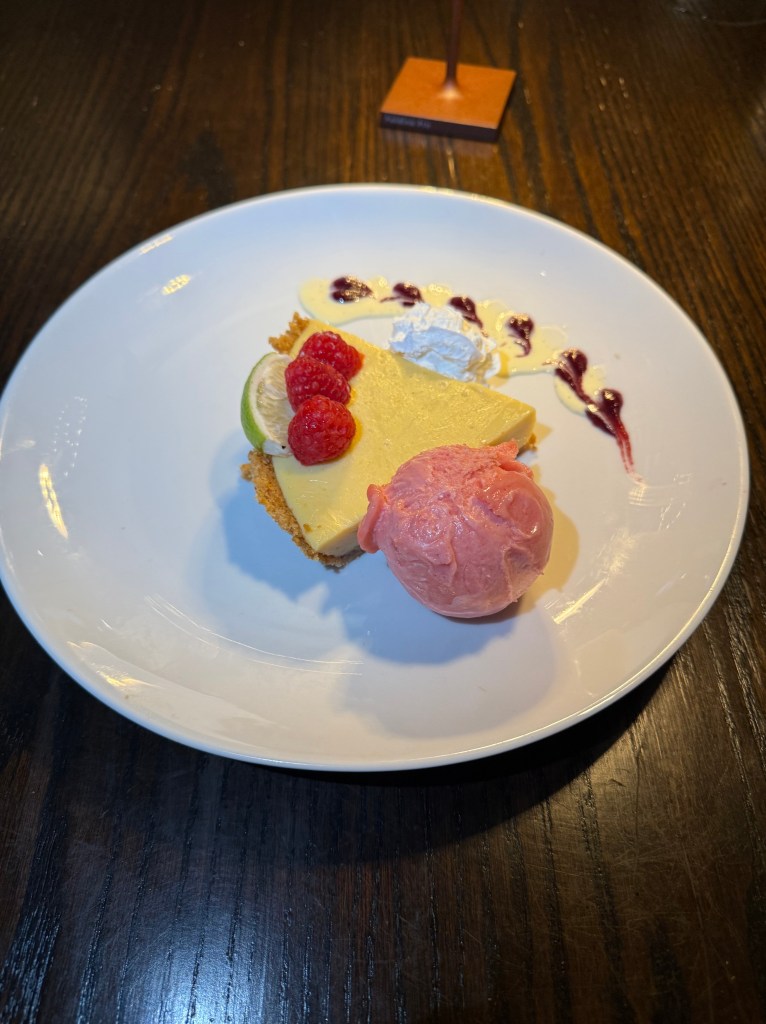 Key lime pie is always difficult to review, because preferences for the dish range from uber-sweet (looking at you Royal Caribbean) to lip-puckering-tear-inducing tartness. If sweet is a ten and tart is a one, this pie comes in at a six, which, I did not know until now, is my preference. The smooth, dense texture of the custard, balanced with the just-right thickness of the graham cracker, is rich enough to split. The accompanying sour raspberry sorbet, adjusted that number so we ate them separately.