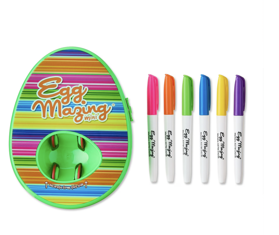 This clever little device holds an egg in place and spins it while kids decorate using the included markers. Instead of dipping eggs in cups of dye and hoping nothing spills, children simply touch the markers to the spinning egg to create colorful patterns.
